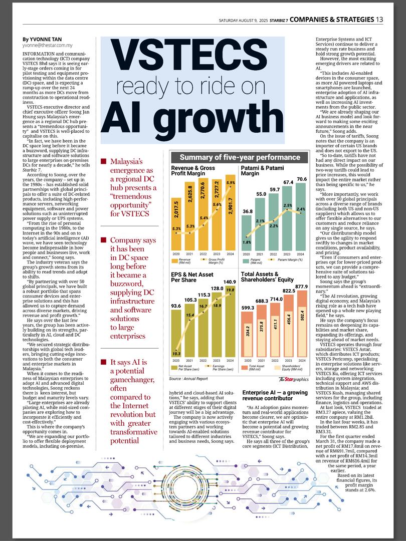 VSTECS expects ‘exceptional momentum’ for FY2025 as 2Q profit jumps 32% on robust sales VSTECS Berhad 13 Aug 2025